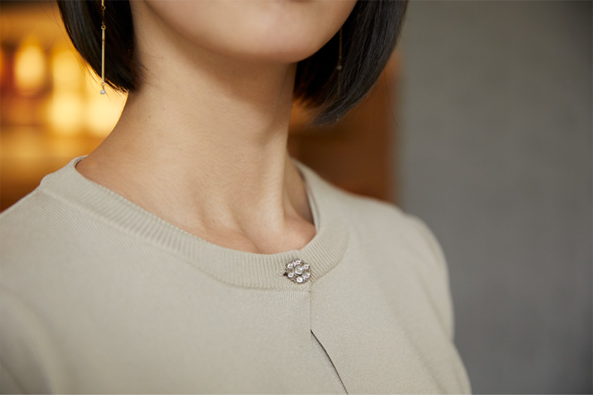 「洋服選びをする際は、デイリーにもお仕事にも着られるものを選んでいます。SEVEN THREE.という真珠のブランドをディレクションしているのですが、そのジュエリーと合う上品な装いを心がけています。