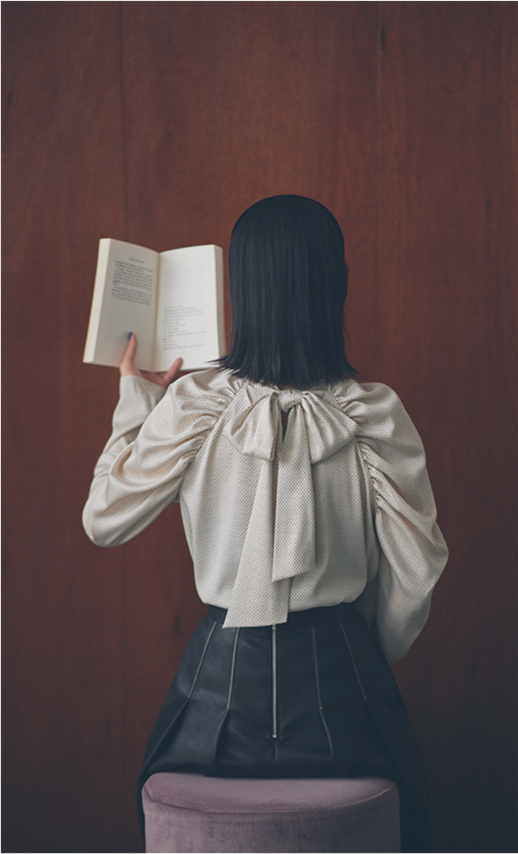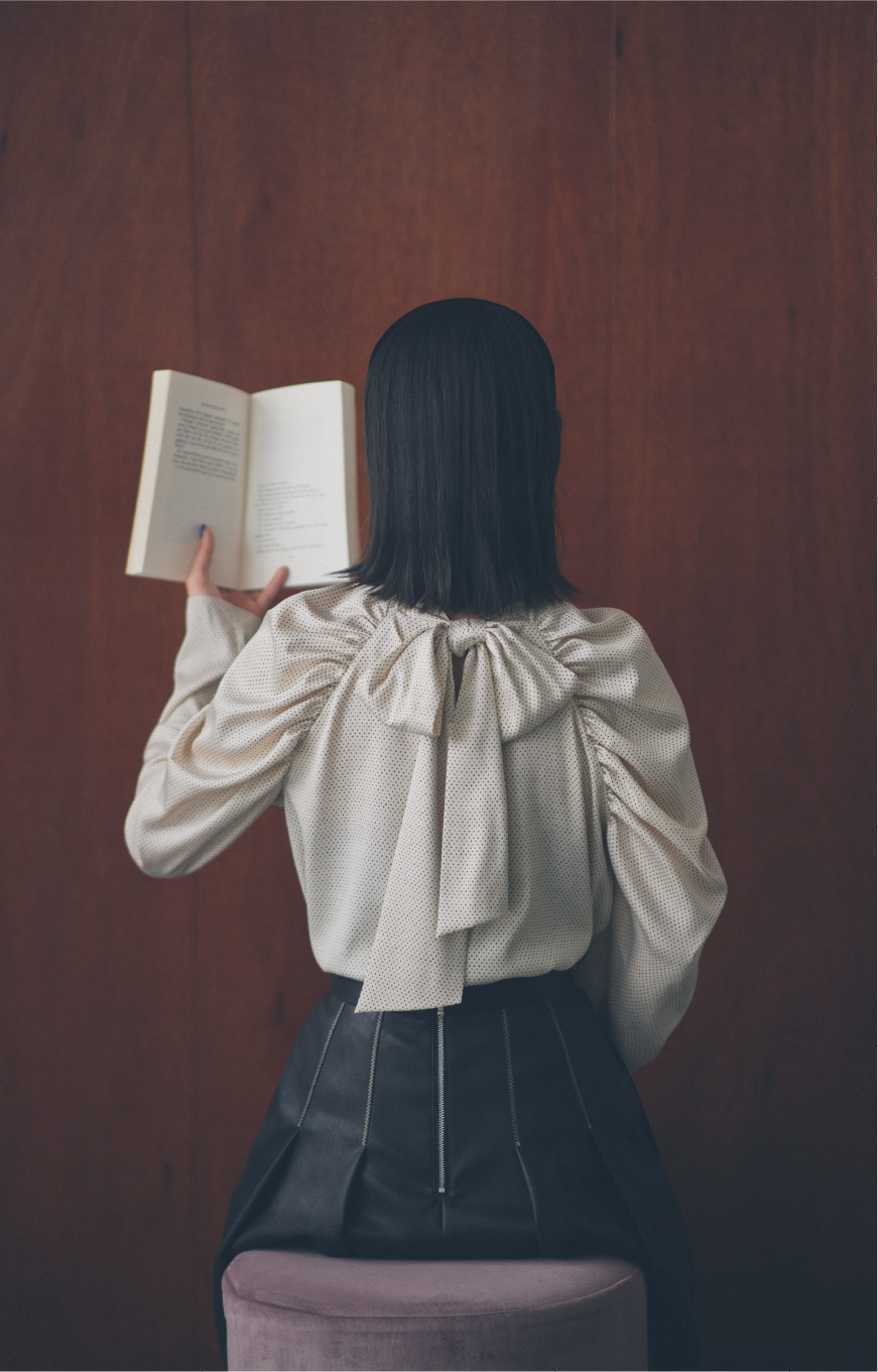 しっとりとろみのあるフェミニンな微光沢サテンはシワになりにくく、慌てて出かける日にも重宝する優れもの。手描き風の細かなドット柄を配することで深みのある表情を実現させました。さらにボトムによってインもアウトもしやすい丈感もポイント。特別な日だけでなく、デニムパンツ合わせなどカジュアルな日常使いもサマになります。