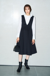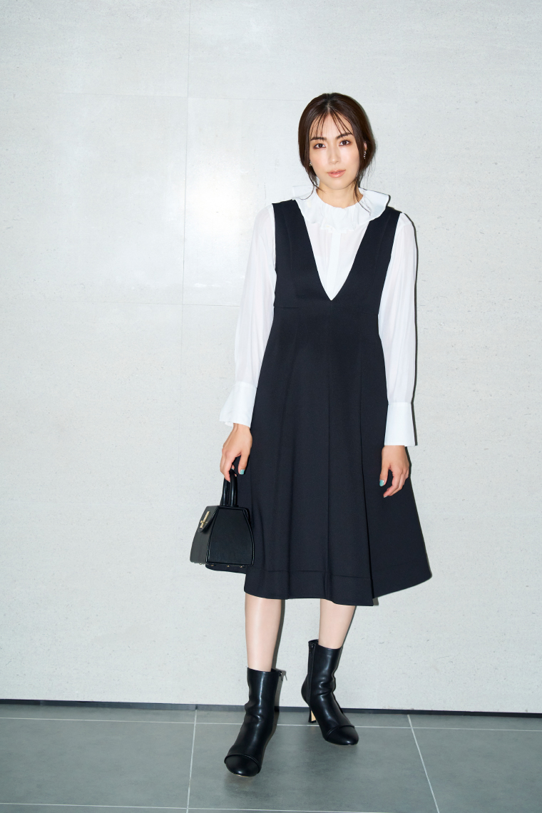CASUAL ELEGANT 生活の多様化により、 カジュアルにも着られるきちんとアイテムが重宝されるようになってきました。 旬や遊び心を兼ね備えたデザインのものが多いので、 シーンに合わせて自分らしいスタイルが楽しめます。 06 スタイリッシュなウールニット×ストレートパンツ YURI’S RECOMMEND 「普段からパンツでセレモニーに参加することが多いので、パール付きのパンツと衿つきのトップスはとても使い勝手がいいと思いました。素敵なオケージョン服を買っても出番が少ないのは残念なので、これならそれぞれデイリーにも着られてお得感もあります」 WASHABLE 衿付きウールニットプルオーバー 11,550yen SUSTAINABLE パールポケットテーパードパンツ 18,700yen WASHABLE ウールカーディガン 13,200yen 07 小粋でお洒落な肩ニット×コクーンパンツ SUSTAINABLE 肩スリットフリルニットプルオーバー 16,500yen WASHABLE SUSTAINABLE コクーンパンツ 19,800yen YURI’S RECOMMEND 「ヘルシーな肌見せニットとパンツ、しっくりくる組み合わせですね。このニットはウエスト部分がリブでほっそり見えますし、パンツも横からのラインが綺麗で、着ているとスタイルに自信が持てそう。ブローチを加えるだけでお出かけ用になるのもいいですね」 SUSTAINABLE 肩スリットフリルニットプルオーバー 16,500yen WASHABLE SUSTAINABLE コクーンパンツ 19,800yen 08 才色兼備なスクエアネックニット×リバータイトスカート YURI’S RECOMMEND 「ヘアメイクさんとも話していたのですが、CELFORDのパワショル系のトップスって肩の入り方が独特で、モード派や辛口系が好きな人にもファンが多いのがよくわかります。オケージョンシーンにもかっこよく映える、いいとこ取りのニットとスカート」 WASHABLE スクエアネックニットプルオーバー 14,300yen リバータイトスカート 20,900yen FUR FREE 3WAY ITEM 3WAYリバートレンチコート 46,200yen 09 トレンドライクなジャンパースカート YURI’S RECOMMEND 「流行中のジャンスカは難易度高めかなと思っていたのですが、中に合わせるアイテム次第で全然印象が異なるのですね。フリルブラウスと合わせるとこんなに華やかでバランス良く見えるなんて!」 SUSTAINABLE フレアージャンパードレス 18,700yen ラッフルカラーシャツ 15,400yen 10 匠の技が光るエンブロイダリーカラーワンピース YURI’S RECOMMEND 「やっぱり!このワンピースも肩デザインが素敵ですよね。こちらは彼の実家に挨拶に行くときなど、初めましてのシーンに満点のワンピースだと思います。白襟や白カフスの持つ清潔感は、抜群ですから」 WASHABLE COLLAR&CUFFS ON/OFF エンブロイダリーカラーポンチワンピース 20,900yen