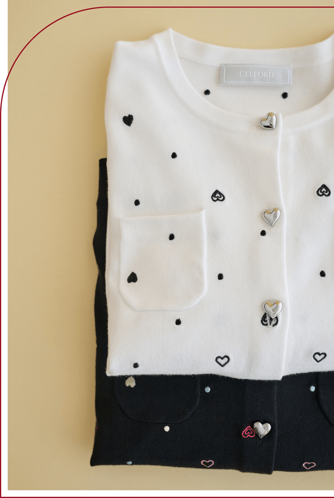 CELFORDが描くバレンタインは、 甘さに寄りかからず、軸にあるのは洗練。 ディテールに密かに忍ばせた ハートモチーフが、 装いにさりげないときめきを添えます♡