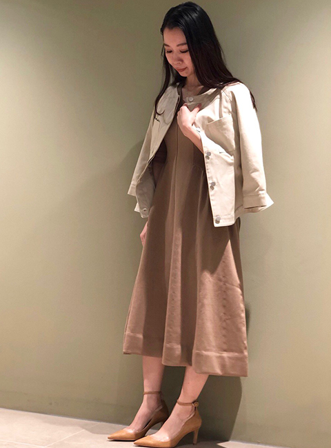 ペプラムのブルゾンはチノ素材でデイリー使いにとても便利です。軽くて持ち運びも容易で冷房や日差し対策でもさっと羽織るだけでエレガントな雰囲気を出せます。