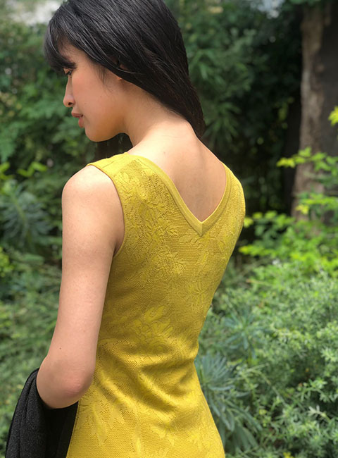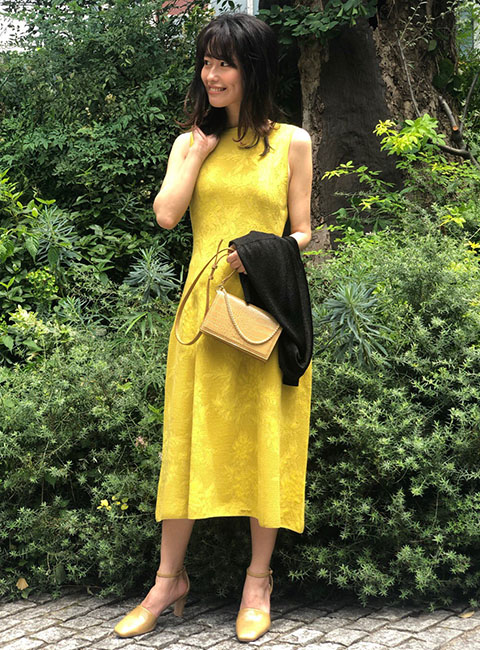 フィット&フレアの美しいシルエットがこだわった、フラワー柄が浮かぶニットワンピース。合わせる小物次第でパーティーにもデイリーにも対応する万能アイテムです。