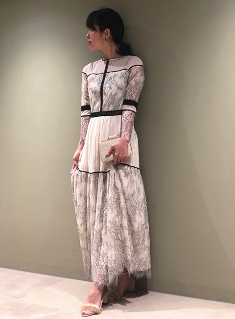フィット&フレアの美しいシルエットにケープ風のディティールをMIXさせ、より上品な表情に仕立てました。