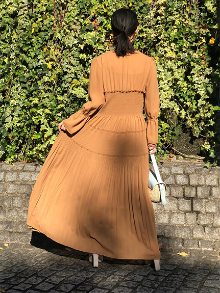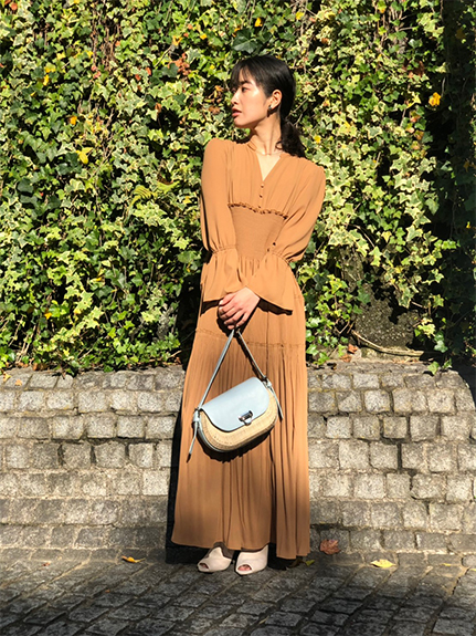 歩くたび、軽やかに揺れる姿が美しいワンピース。 ギャザー、プリーツ、シャーリングとディティールが盛り込まれた、主役の1枚です。