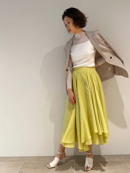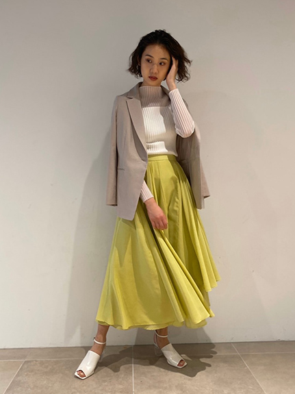 風が通り抜けるような、軽やかさを演出するスカート。 柔らかでシアー感のある素材なので、春らしい足元になります。