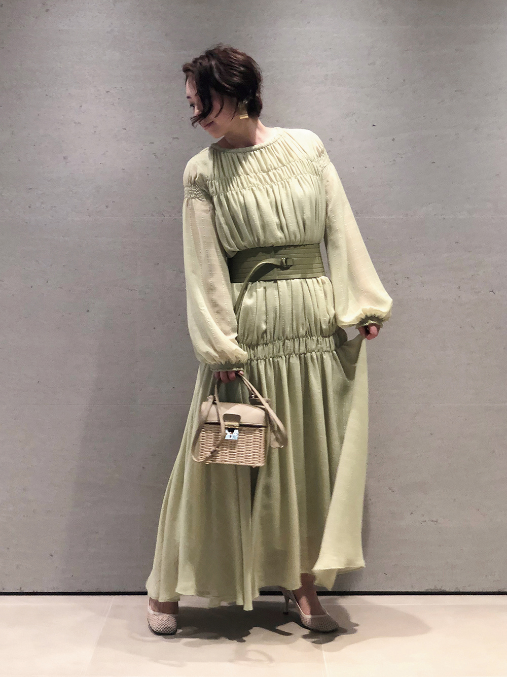 ふんだんなギャザーが風に揺らめくやわらかなシルエットをつくります。1枚で映える春らしいミントカラーも魅力的。